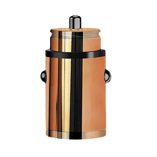 CC10 Adaptador metálico para automóvil electro plateado en cobre. Entrada USB-A y C. Adaptador para 12 y 24 Volts. Tamaño Ø 4 cms /Alto 6 cms. Material Zamak Peso 34 grs. Presentación Caja De Cartón Negra. Embalaje 1 Unidad. Embalaje Master 300 Unidades. Tamaño Caja Master 33,8 x 24 x 15 cms. Peso C…