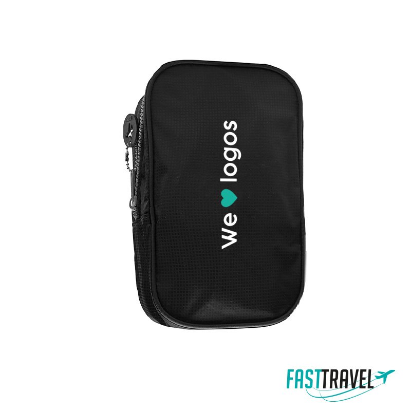 Necessaire con panel frontal traslucido, el cual permite ver los productos en el interior y correa de transparente. Medidas: 22 x 10 x 13cm. Capacidad 4 Litros. Imágenes ilustrativas, no incluye los productos cosméticos. Fast Travel