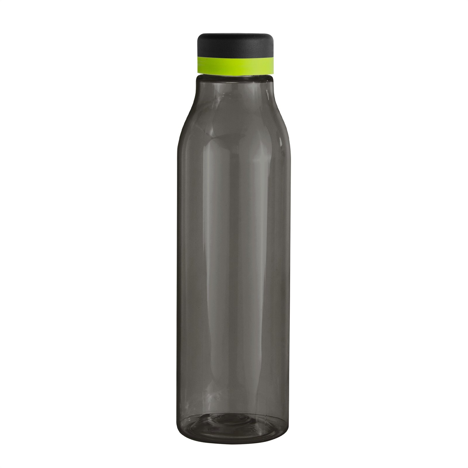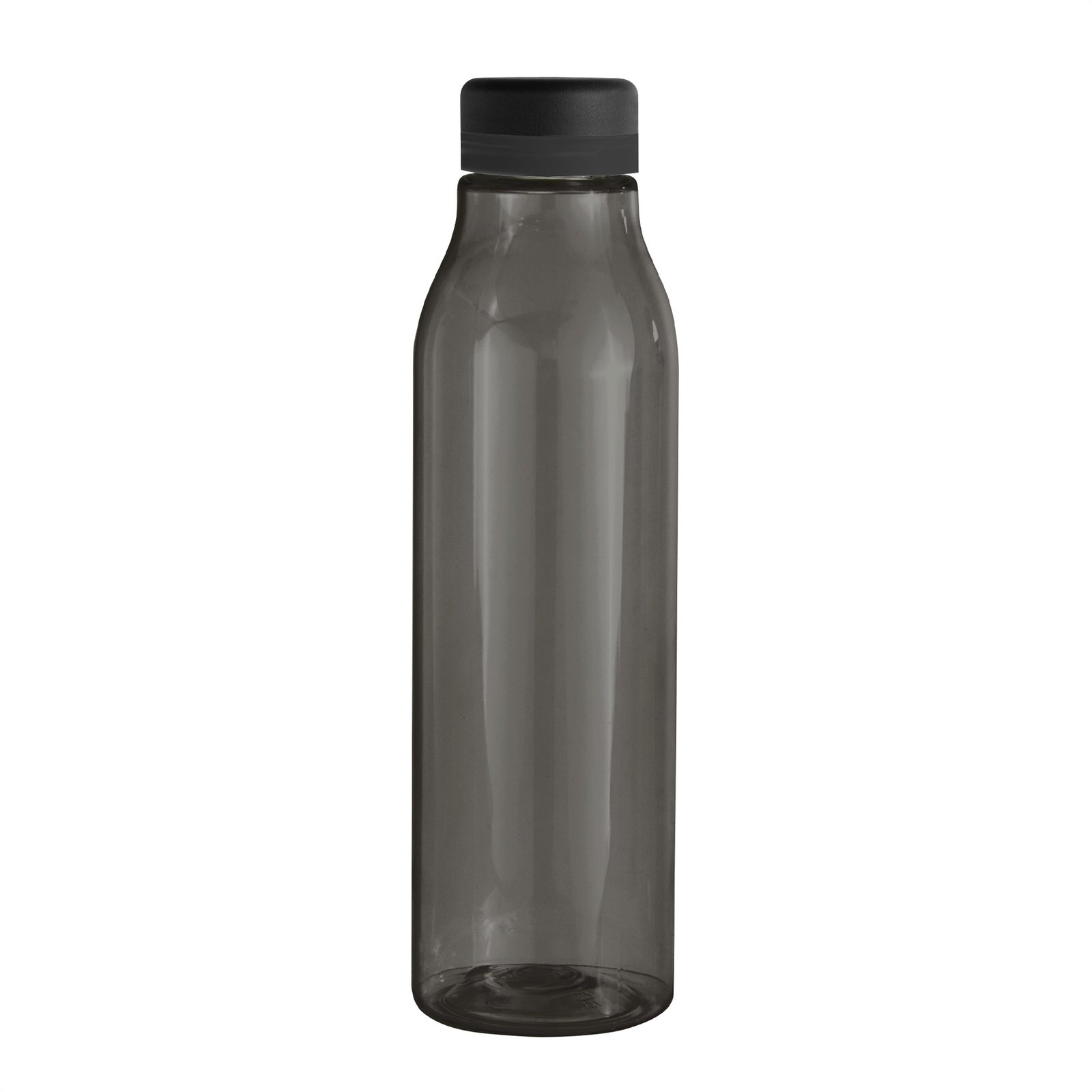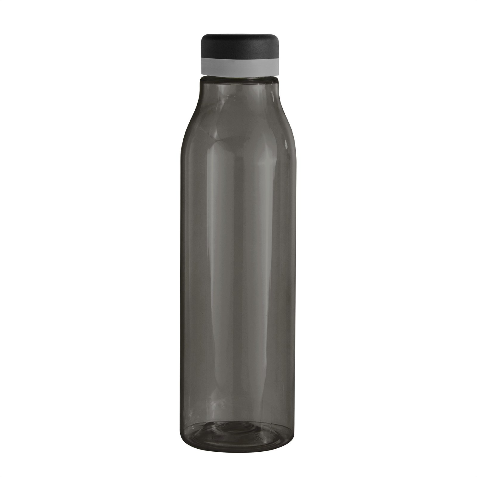 Única en su estilo.Botella de plástico color negro con tapa a rosca color negro mate con anillo de silicona de diferentes colores.Medidas: Ø 7 x 24,5 cm.