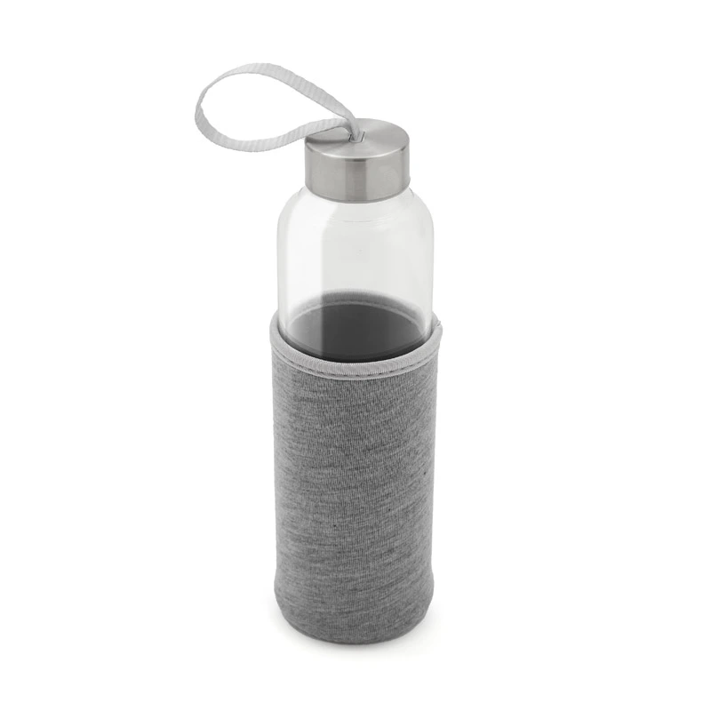 Botella fabricada en vidrio borosilicato, un material resistente y duradero. Cuenta con una funda protectora de neopreno brindando un diseño práctico que protege contra golpes. Su tapa a rosca incluye una cinta integrada, ideal para un transporte cómodo y seguro. Con una capacidad de 550 ml, es perf…