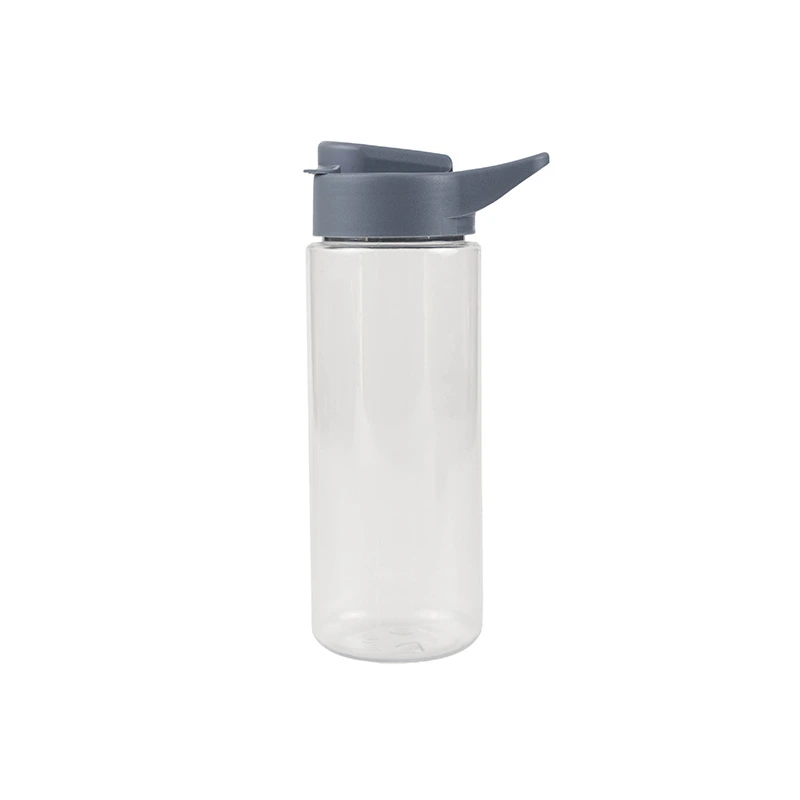 Botella transparente reutilizable de PET con tapa de Polipropileno, cuenta con un agarre en la tapa para su transporte. Producto libre de BPA. No es apta para bebidas calientes, lavavajillas ni microondas. Capacidad: 600ml.