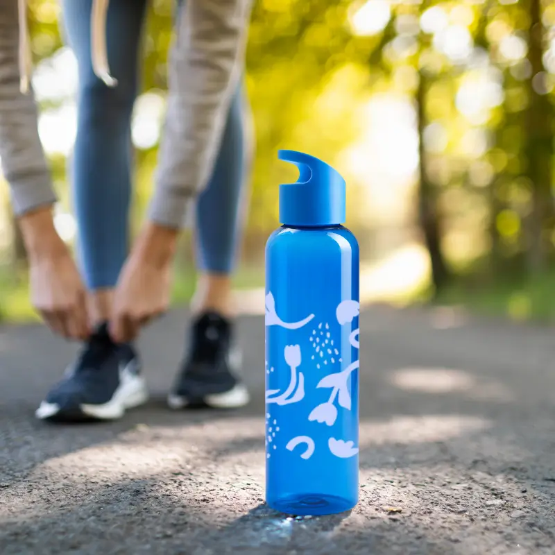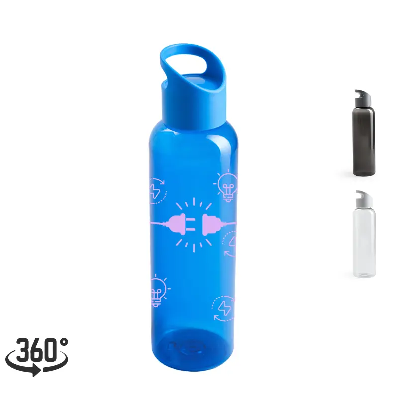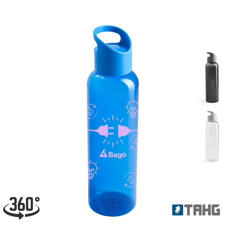 Botella hecho de PETG y PP. Ideal para ir a hacer deporte. Cuenta con un agarre en la tapa, para facilitar su transporte. Capacidad: 650 mL. Ideal para deporte o uso diario. Producto Libre de BPA. Medidas: 25,5 x 6,7 cm.
