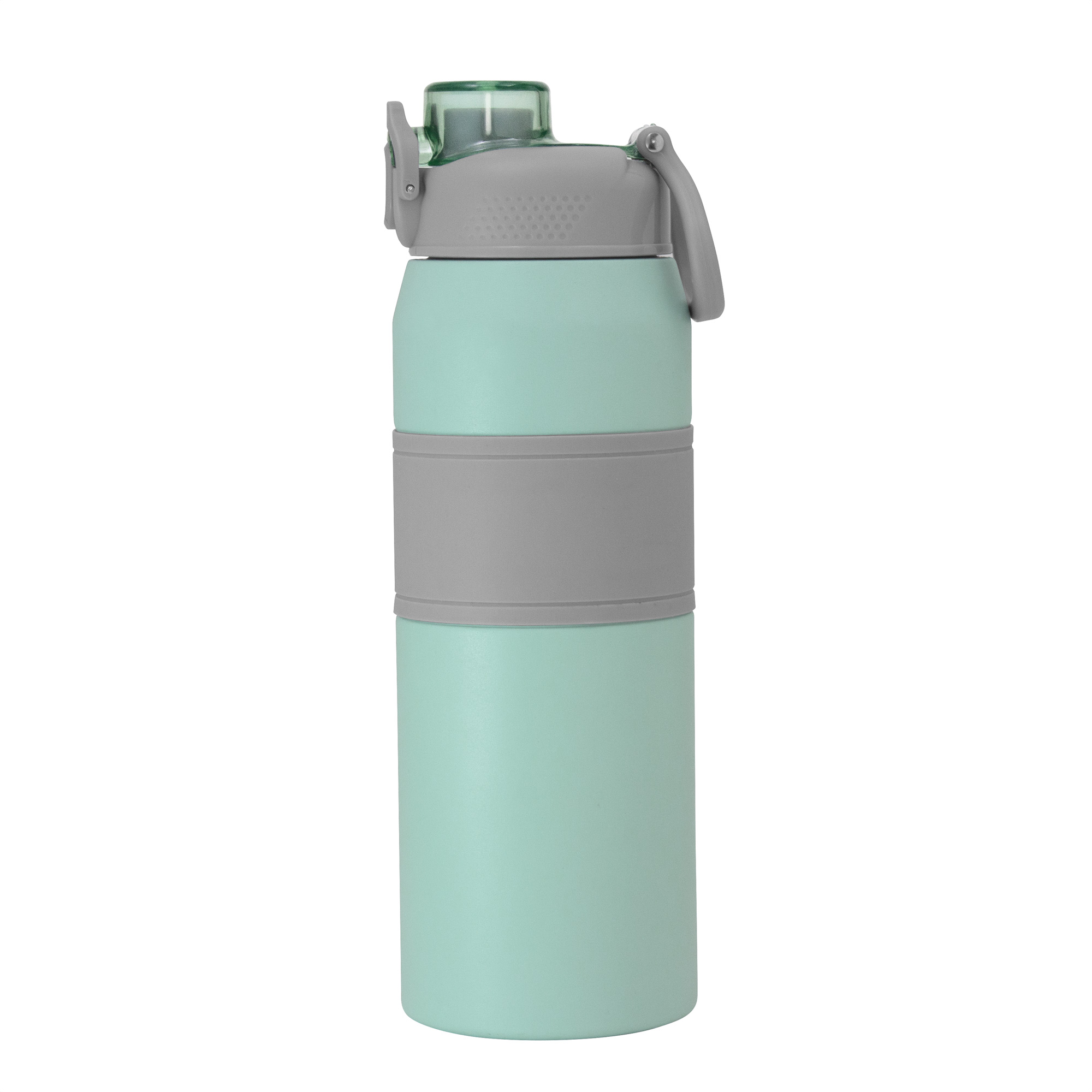 Hidratación a otro nivel.Botella deportiva con doble pared, sellada al vacío. Interior de acero 304 y exterior de acero 201. Pintura powder coat (pintura más duradera y resistente a la corrosión y el paso del tiempo). Tapa plástica a rosca en color gris con anillo de silicona y manija plástica para…