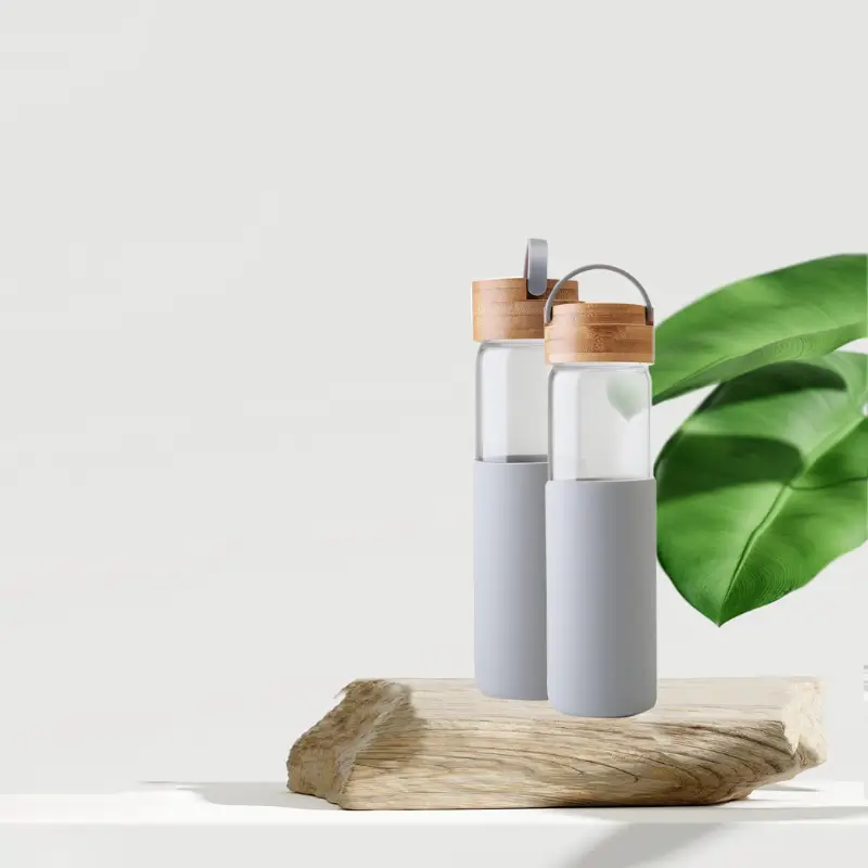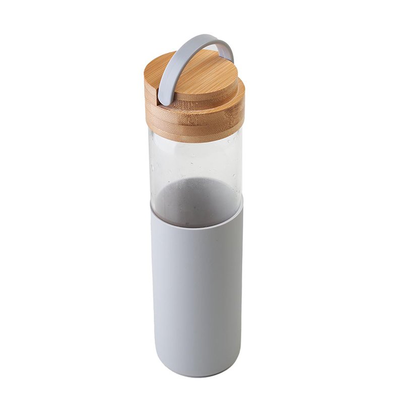 Botella reutilizable de vidrio, con tapa de bamboo y funda de silicona. Cuenta con un agarre en su tapa para su transporte. Producto libre de BPA. Medidas: 22,6 cm x Diámetro 6,8 cm. Capacidad: 550ml.