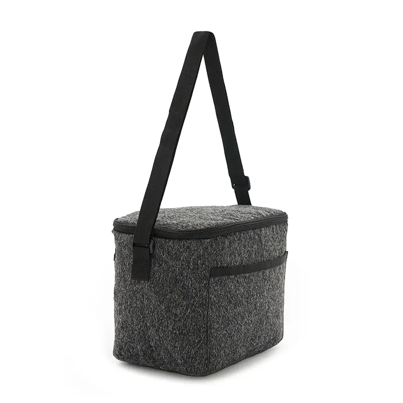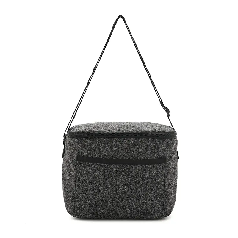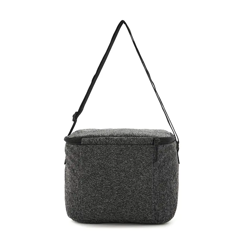 Cooler fabricado en tejido de punto como lienzo de nieve, con un revestimiento interior de espuma de polietileno y PEVA. Dimensiones: 22,5 x 18 x 16 cm. 6L