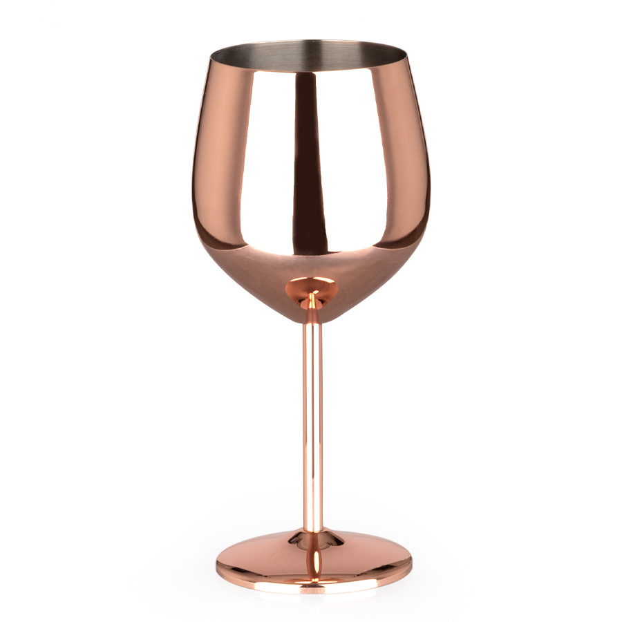 Copa de Acero inoxidable 304 SS de 0.6mm de espesor, con superficie lisa en color encobrizado. Producto BPA FREE, para el contacto con líquidos y alimentos. Capacidad 500ml. Presentación en bolsa PP + caja de regalo de cartón negro.