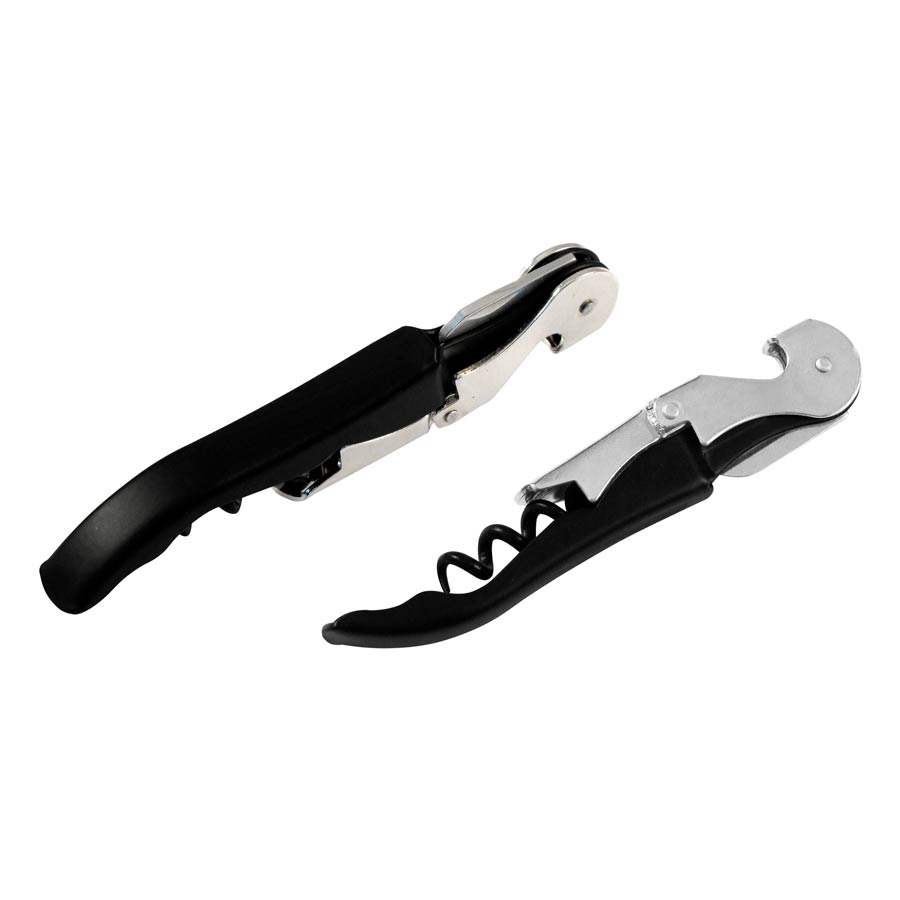 Descorchador profesional "Sommelier" de 2 tiempos de Acero Inoxidable con cubierta y tirabuzón de teflón. Presentación en caja de cartón plateada.