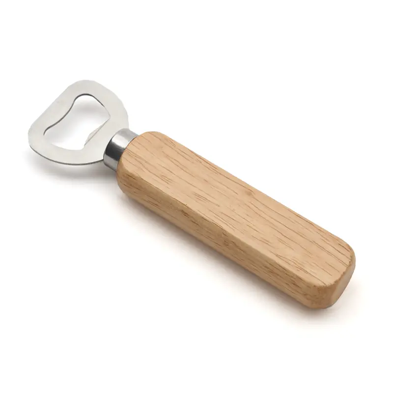 Destapador de botellas fabricado en acero con mango de madera de caucho, combina un diseño clásico con materiales resistentes y duraderos.