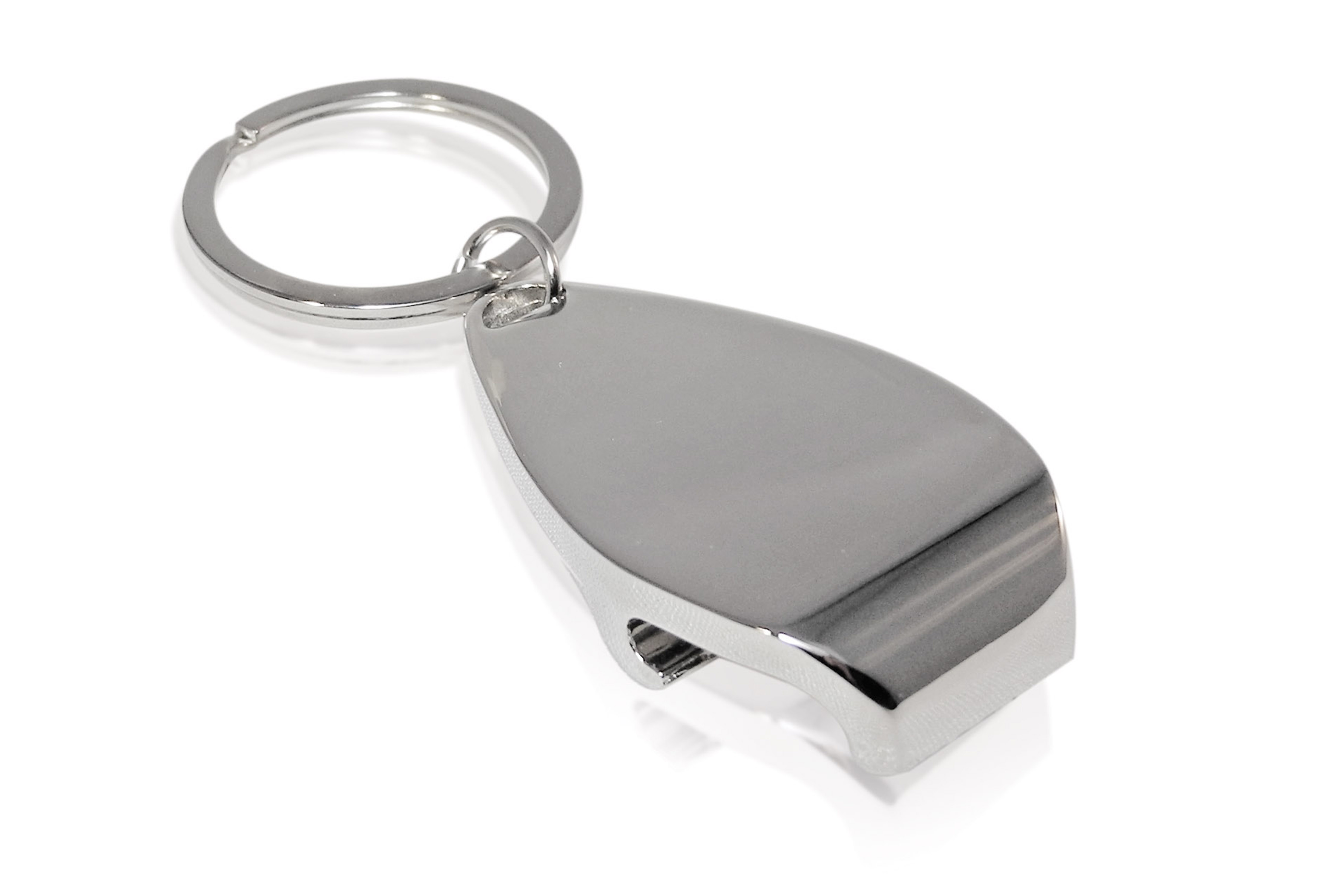 2,8 x 1 x 5 cm Metal. Llavero plano que se puede usar como destapador. Presentación en caja de regalo.