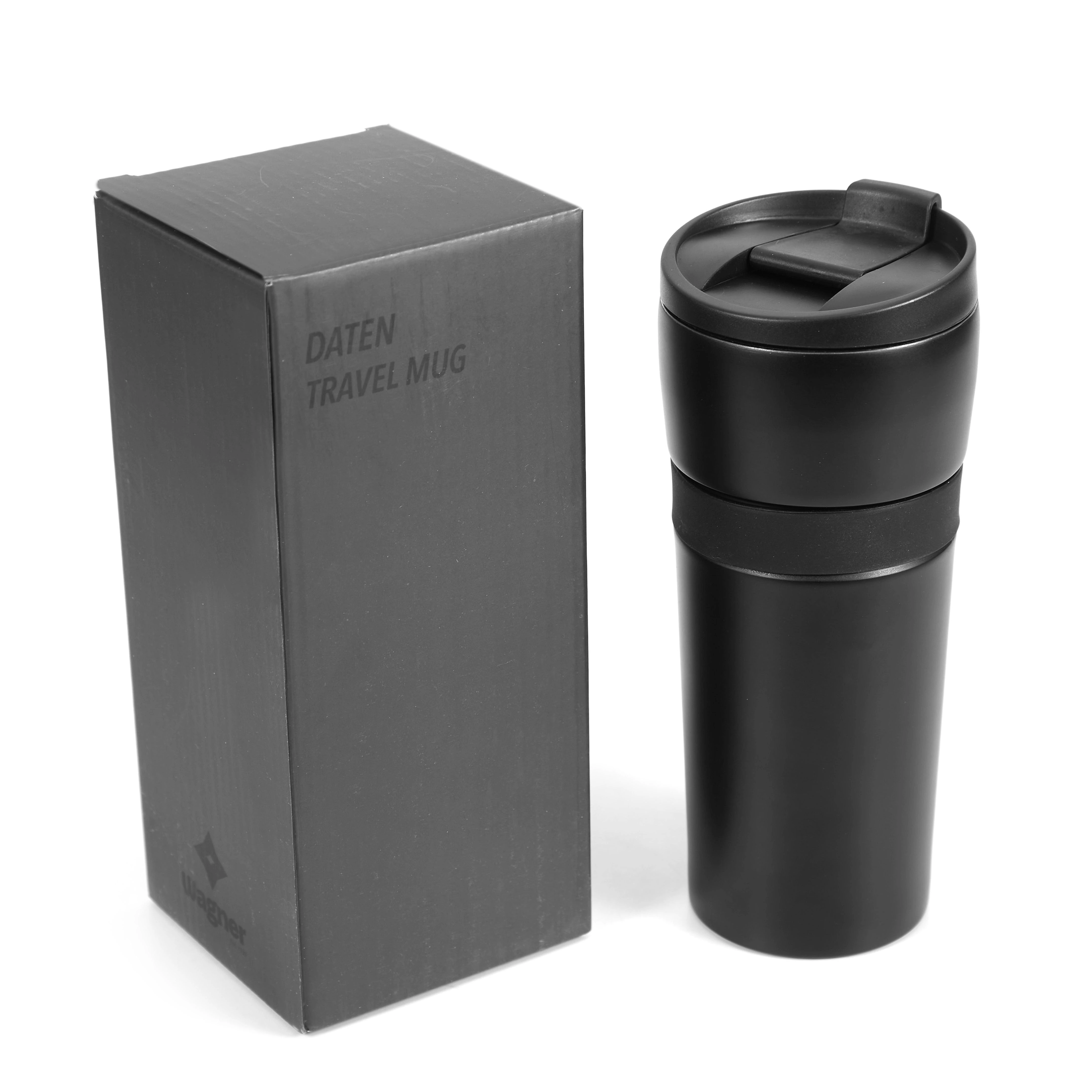 Mug térmico de doble pared en acero inoxidable. Cuenta con terminación exterior en color negro mate. Posee grip de silicona antideslizamiento y Cierre hermético y boca para tomar con traba a presión y silicona para evitar derrames. Interior de acero inoxidable. LOGO24: Producto disponible para el s…