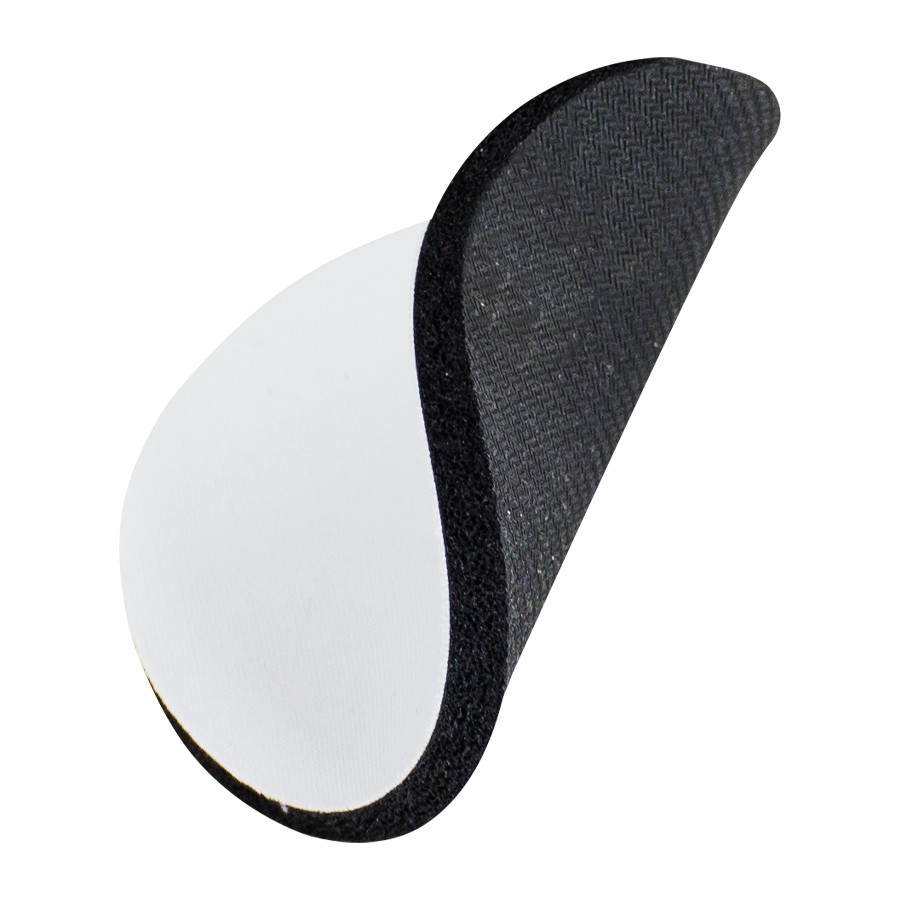Posavaso redondo de 5mm de espesor y 9cm. de diámetro, con base de silicona negra y cubierta de tela blanca para Sublimación.