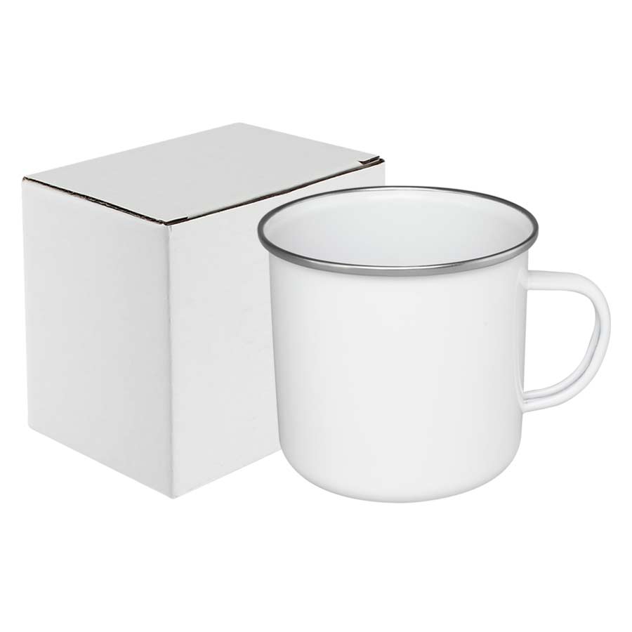 Tazón grande de acero enlozado "Enamel" de 700cc. con cobertura para Sublimación. Único con borde de Acero Inoxidable, que entrega higiene y protección al contacto con tu boca.