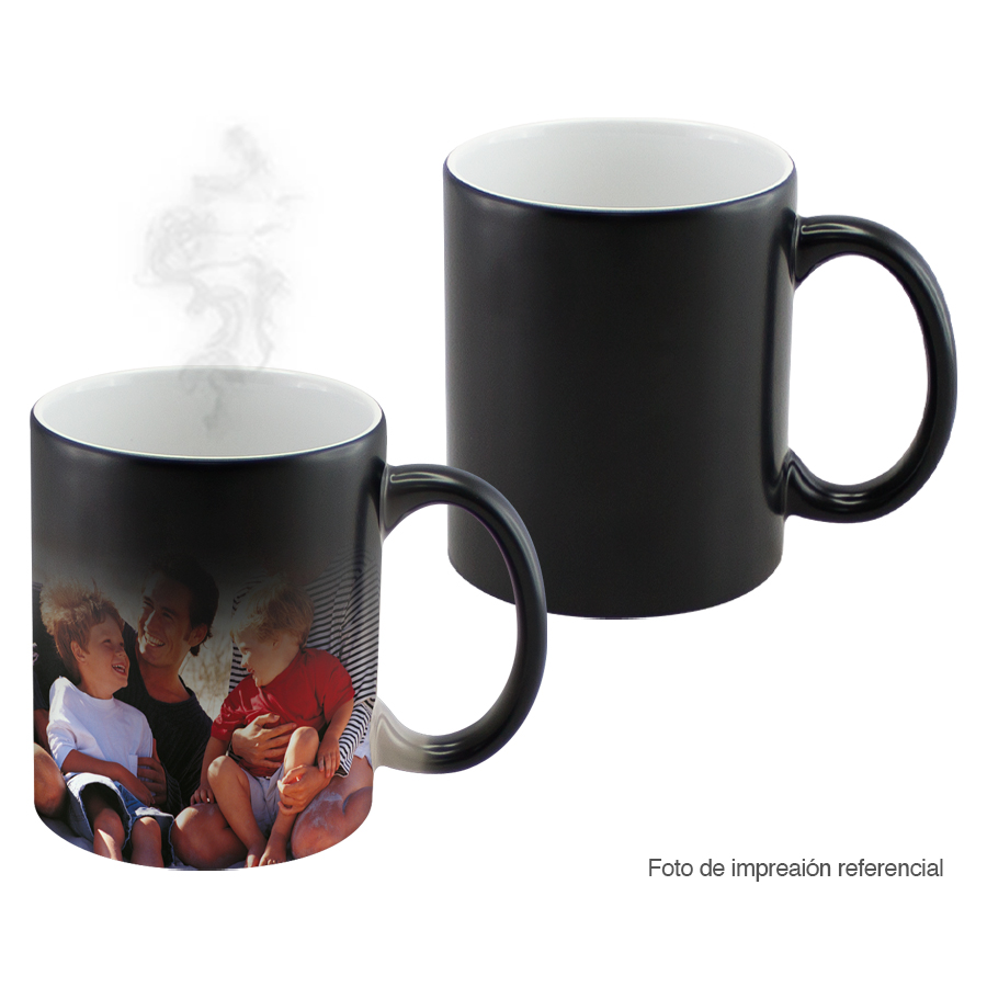 Tazón cerámico mágico color Mate (opaco) para Sublimación. Contiene polímero termo-reactor en la pared exterior del tazón. A primera vista parece un tazón negro estándar, pero en contacto con líquido caliente, la imagen sublimada comienza a aparecer nítidamente en el tazón. Una vez que el líquido se…