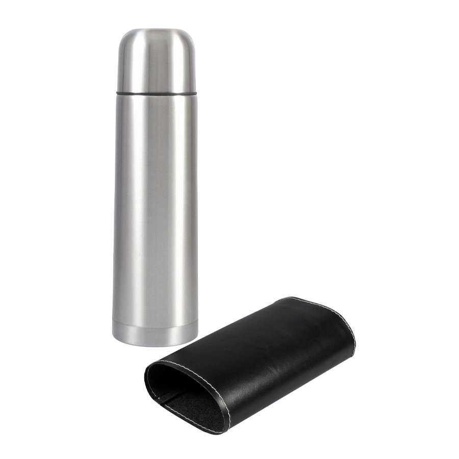 Termo de Acero Inoxidable de 1/2 Litro, con funda de PU negro (removible).
