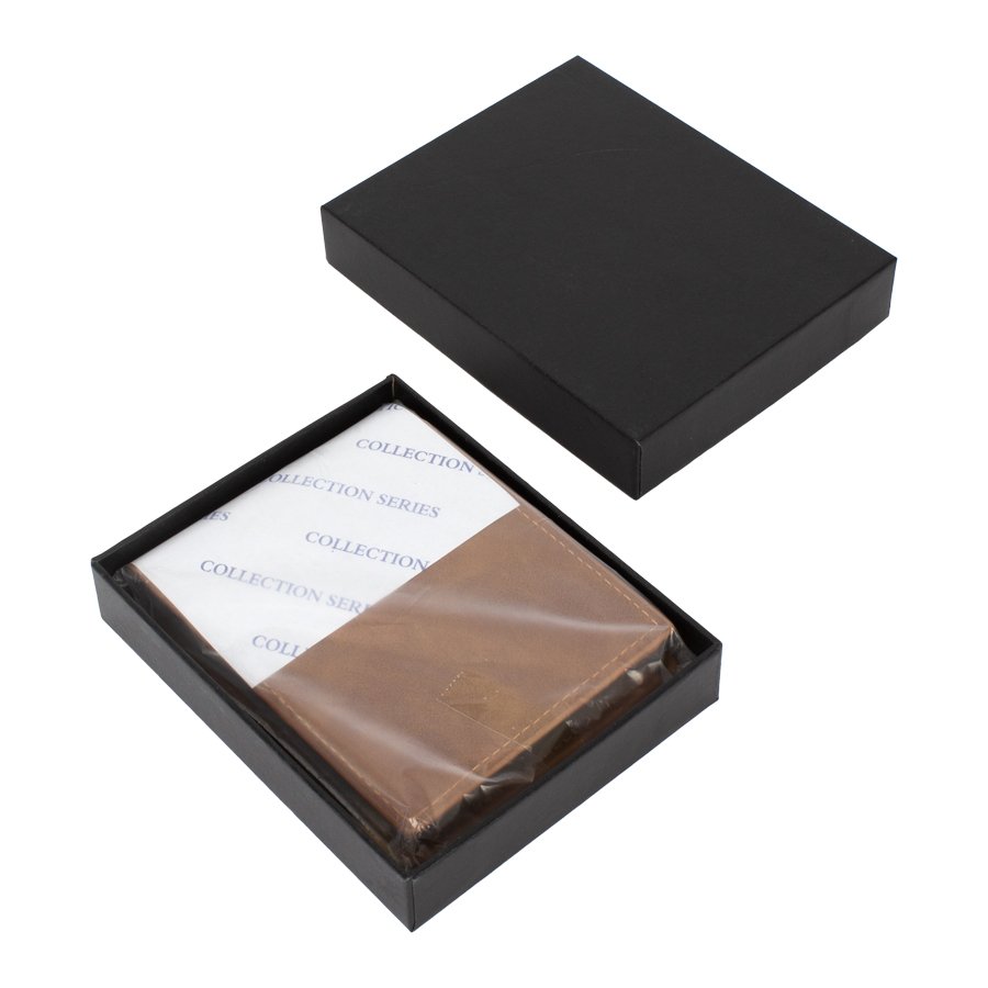 Billetera de eco-cuero, modelo "GEORGIA". Contiene 6 compartimentos interiores, uno de ellos con cremallera. Presentación en bolsa frozen y caja de cartón forrado negro opaco.