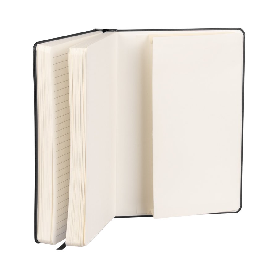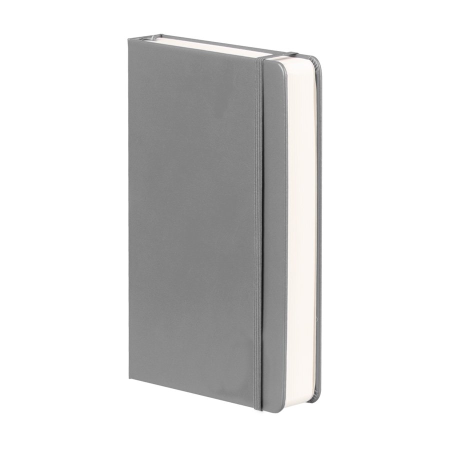 Cuaderno tamaño A5 modelo "ROMA", con tapa dura de cartón piedra de 2.0mm forrado en Eco-Cuero PU. Contiene 192 finas hojas lineadas amarillas FSC IVORY PAPER de 80g/m2 + 4 hojas de 140g/m2 con 1 bolsillo interior en la última hoja. Contiene elástico para cierre de 8mm de ancho y banda separador de …