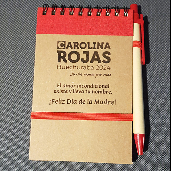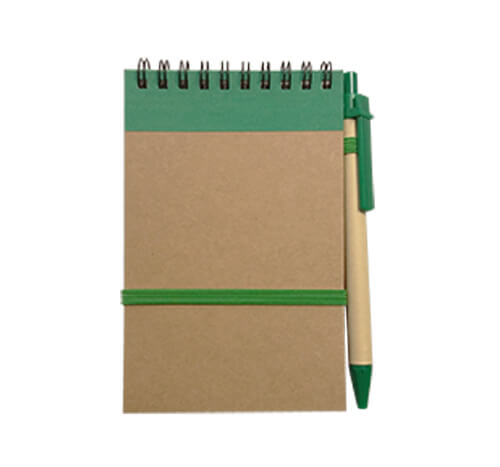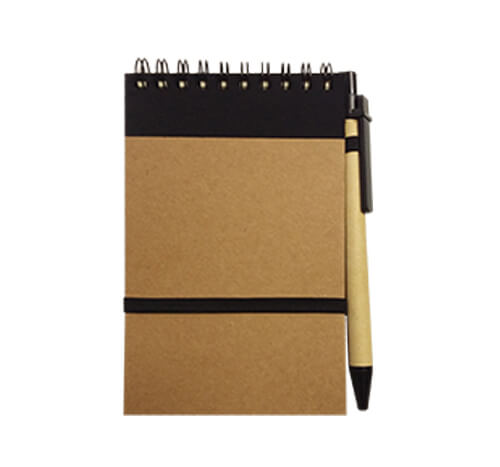 N36 Libreta ecológica de mano con cinta y bolígrafo del mismo color. 50 Hojas papel beige sin líneas de 70 grs. Bolígrafo tinta azul. Tamaño 9 cms. x 14cms. x 0,6 cms. Material Tapa Cartón Beige de 700 grs. Papel Marfil sin líneas Embalaje 50 Unid. Embalaje Master 200 unid. Tamaño Caja Master 45 cms…