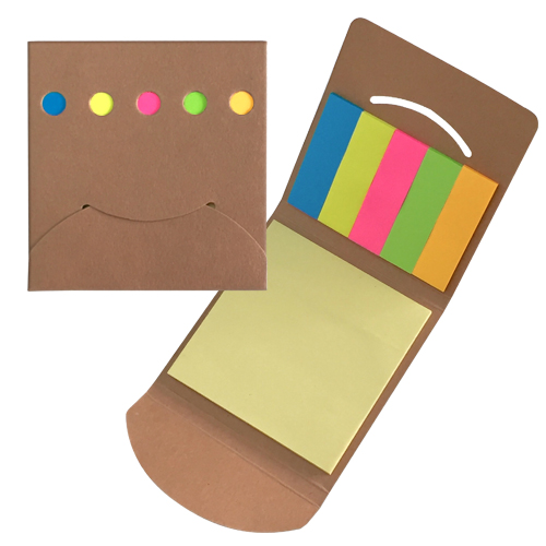 N13 Memo set ecológico de oficina con set de post-it. Tapa con cierre de encaje y orificios. 100 Flag Post-it. 20 Post-it bloc de notas. Tamaño 8,2 cms. x 8,8 cms. x 0,5 cms. Material Tapa Cartón Embalaje 100 unid. Embalaje Master 400 unid. Tamaño Caja Master 38 x 20 x 38 Peso Caja Master 9,5 Kgs. O…
