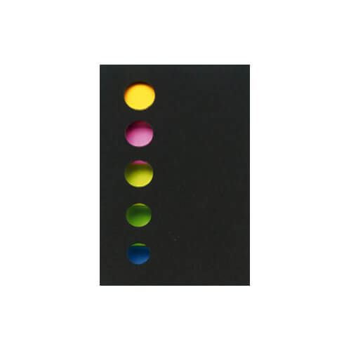 N17 Memo set ecológico color negro con orificios de colores. 125 Flag Post-it. 25 por cada color. Tamaño 5,5 cms. x 8 cms. x 0,5 cms. Material Tapa Cartón Embalaje 100 unid. Embalaje Master 1.000 unid. Tamaño Caja Master 48 cms. x 26 cms. x 21 cms. Peso Caja Master 9 Kgs. Opciones de Personalización