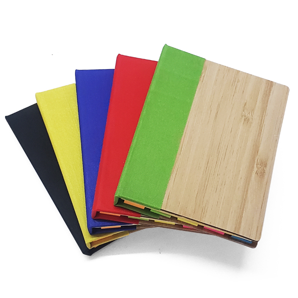 N8 Memo set ecológico con tapa bambú y tela en diferentes colores. Incluye set de post-it y bloc de notas. 125 Flag Post-it. 25 Post-it medianos. 50 bloc de notas. Tamaño 8 x 10,5 x 2 cms Material Tapa Bambú Embalaje 50 unid. Embalaje Master 100 unid. Tamaño Caja Master 34,5 x 20 x 25 Peso Caja Mast…