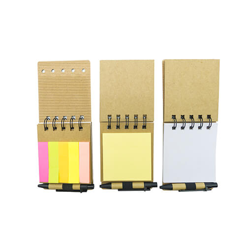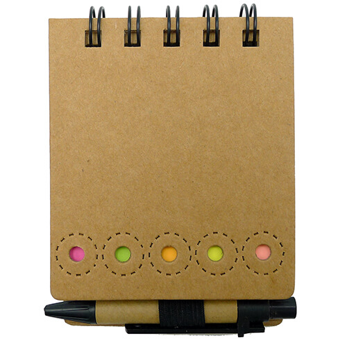 N1 Memo set ecológico de oficina que incluye set de post-it y bolígrafo pequeño ecológico, tinta azul. Tapa con orificios y anillado metálico doble cero. Flag Post-it 125 unds. en colores surtidos, 40 unds. Post-it cuadrados de papel 70 Grs. blanco y 25 unds. amarillos. Bolígrafo ecológico pequeño. …