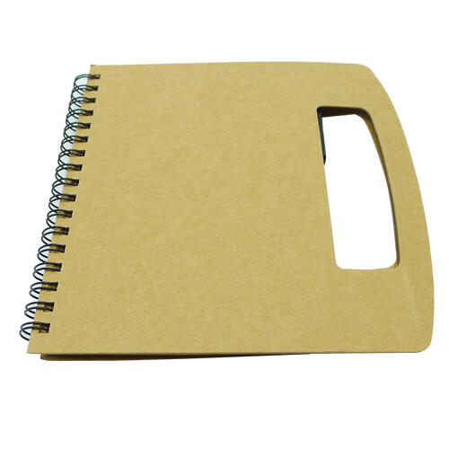 N16 Memo set ecológico libreta con anillado doble cero metálico. Incluye set de post-it, bloc de notas y bolígrafo ecológico, tinta azul. Tapa de cartón troquelado con manilla. 125 Flag Post-it. 25 Post-it bloc de notas. 70 hojas lineadas papel kraft 70 grs, impreso signo reciclaje. Tamaño 16 cms. x…