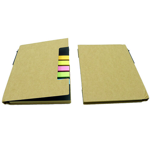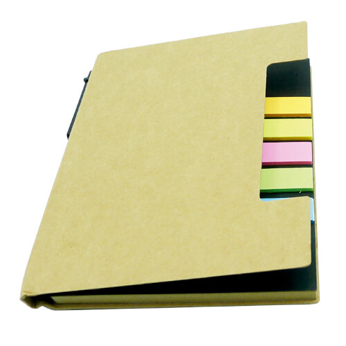 N19 Memo set ecológico libreta que incluye set de Flag Post-it y bolígrafo ecológico, tinta azul. 125 Flag Post-it. 70 hojas lineadas papel kraft 70 grs, impreso signo reciclaje. Tamaño 11,5cms. x 14,5 cms. x 1,5 cms. Material Tapa Cartón Kraft Embalaje 50unid. Embalaje Master 100 unid. Tamaño Caja …
