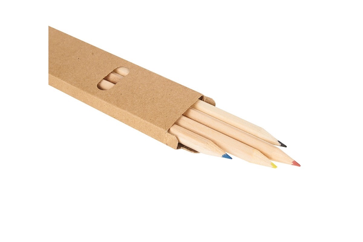 Set de 4 lápices de colores, con mina de 2mm. Realizado en madera de pino. Incluye caja de cartón reciclado. ReUseMe. Incluye Gift Box confeccionada en cartulina Kraft.