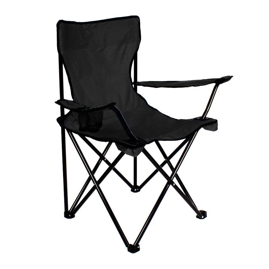 Silla de Camping en tela Oxford 600D raquelada y base plegable de Acero negro 16mm, con apoya-brazos y posa-vaso. Incluye bolso funda tubular de tela poliéster Ripstop 210D, con tanka y colgador. El regalo ideal para ir de camping o a la playa.