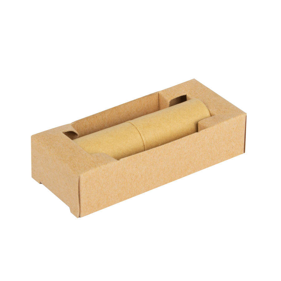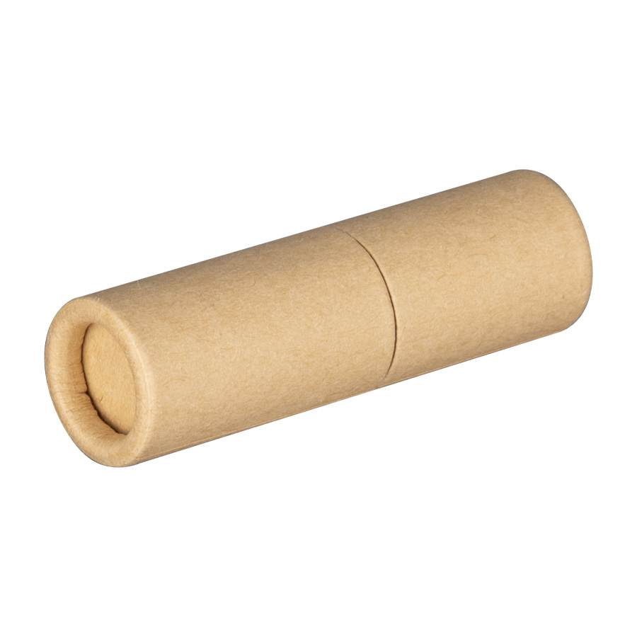 USB Pendrive 2.0 cilíndrico de 64GB de capacidad, 100% en cartón . Presentación en estuche de cartulina.