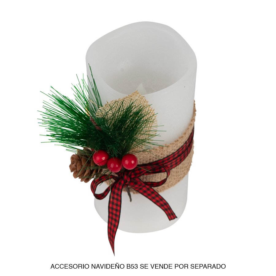 Vela blanca de Parafina, tamaño 15 x 7.3 cm. Con luz cálida LED.