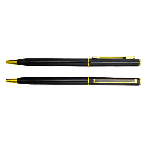 B42 Elegante bolígrafo metálico de color negro con detalles dorados modelo Tourist. Escritura Tinta Negra. Tamaño Ø 0.7×13.3 cms. Material Metálico Embalaje 100 Unid. Embalaje Master 1.000 unid. Tamaño Caja Master 50 x 23 x 13 cms. Peso Caja Master 13 Kg. Opciones de Personalización