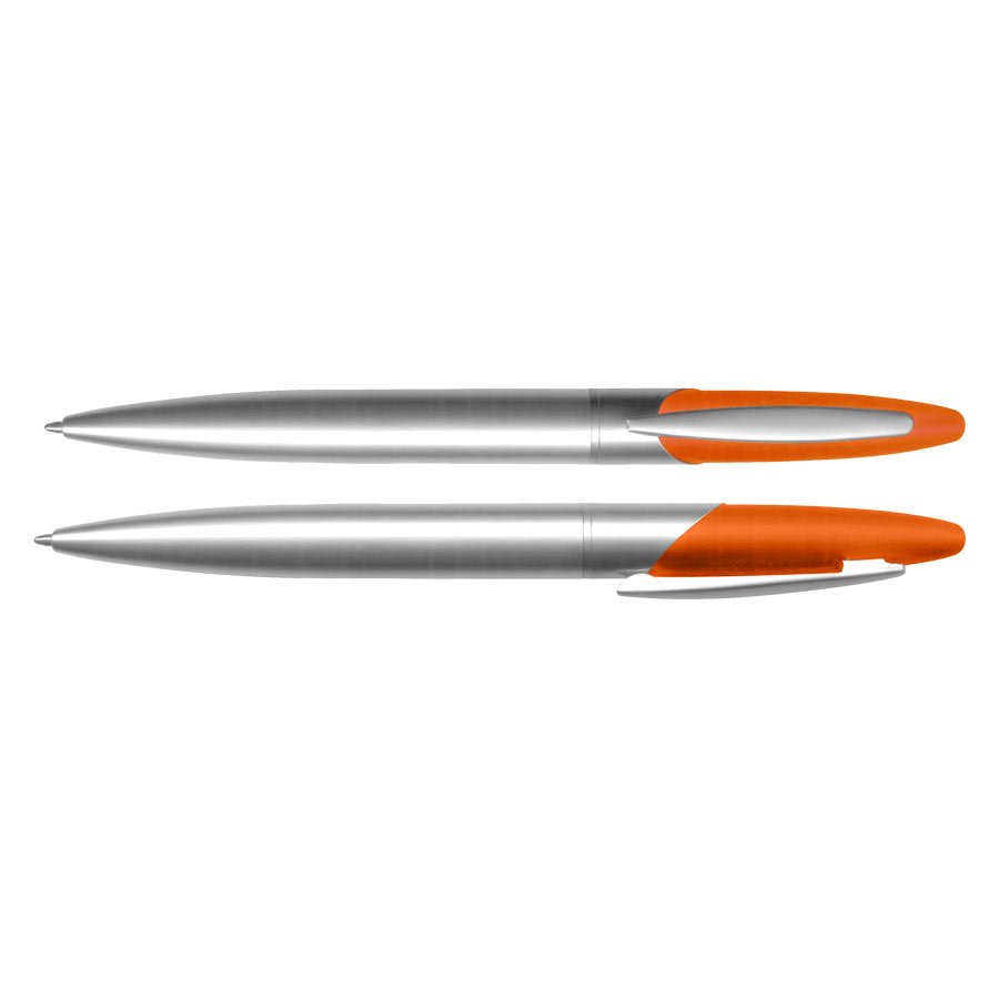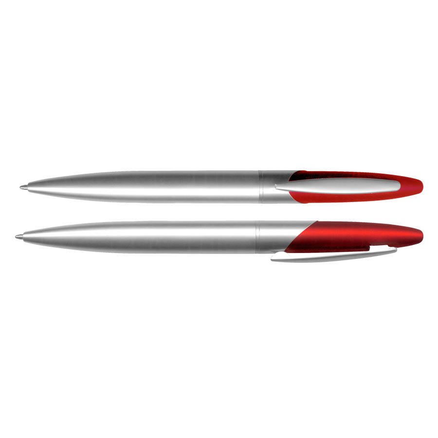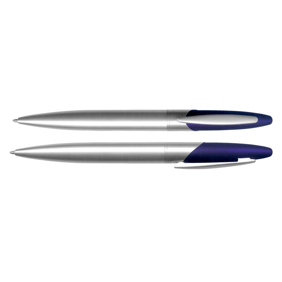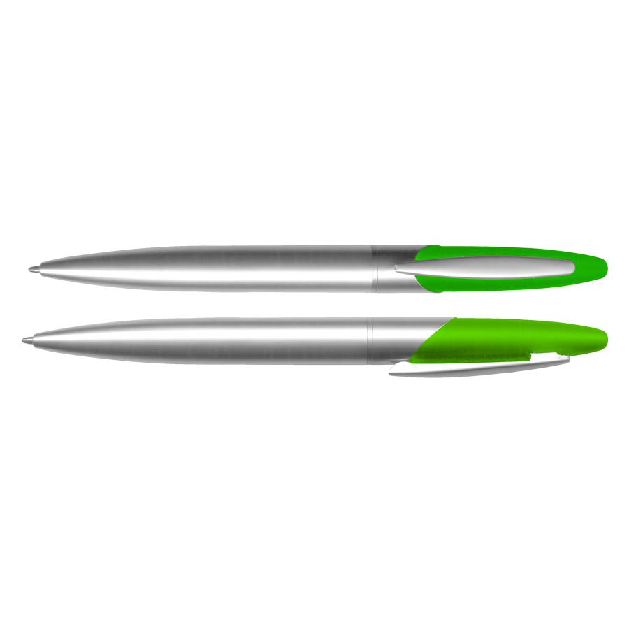 Bolígrafo Metálico modelo "Twister", con superficie superior engomada color. Escritura negra.