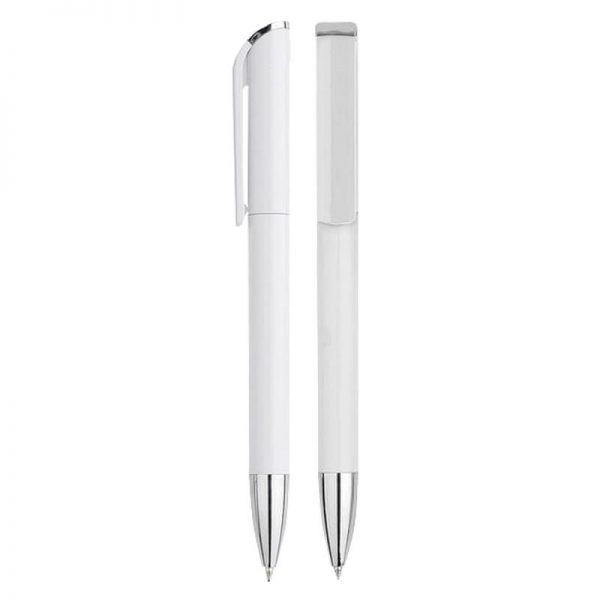 CO10 Bolígrafo plástico estilizado de apertura giratoria. Terminaciones en color plata. Escritura tinta Azul. Tamaño Ø 1,3 cm. x 13,5 cms. Material Plástico Embalaje 50 Unid. Embalaje Master 1.000 unid. Tamaño Caja Master 48x31x20 Peso Caja Master 12 Kgs. Opciones de Personalización Solo el color ro…