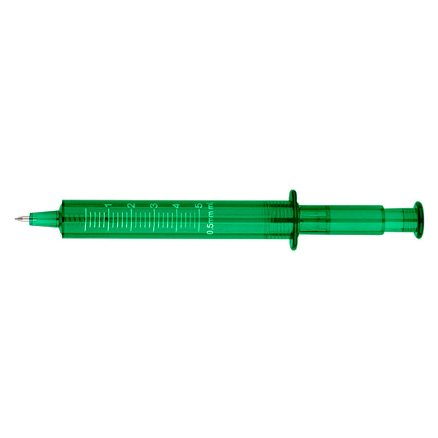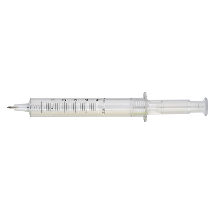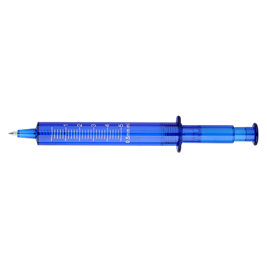 Bolígrafo plástico promocional "Jeringa". Escritura Azul.