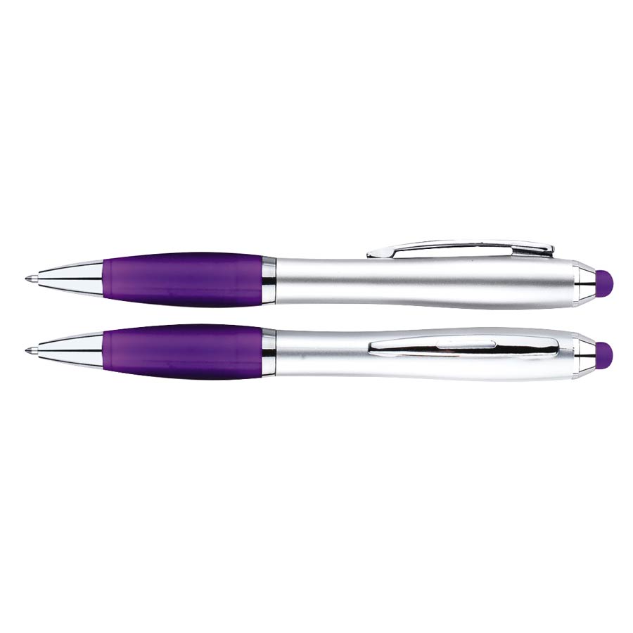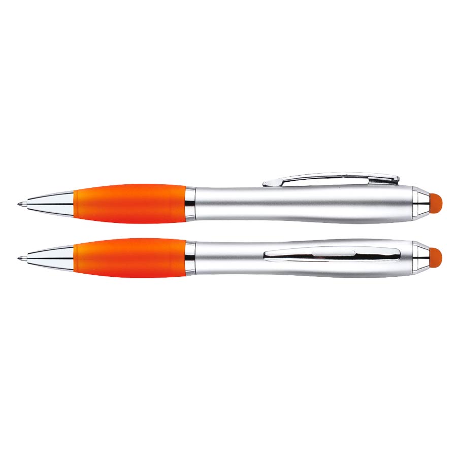 Bolígrafo "Wind Satin Touch-Screen" con goma posterior de color para pantalla táctil. Escritura azul.