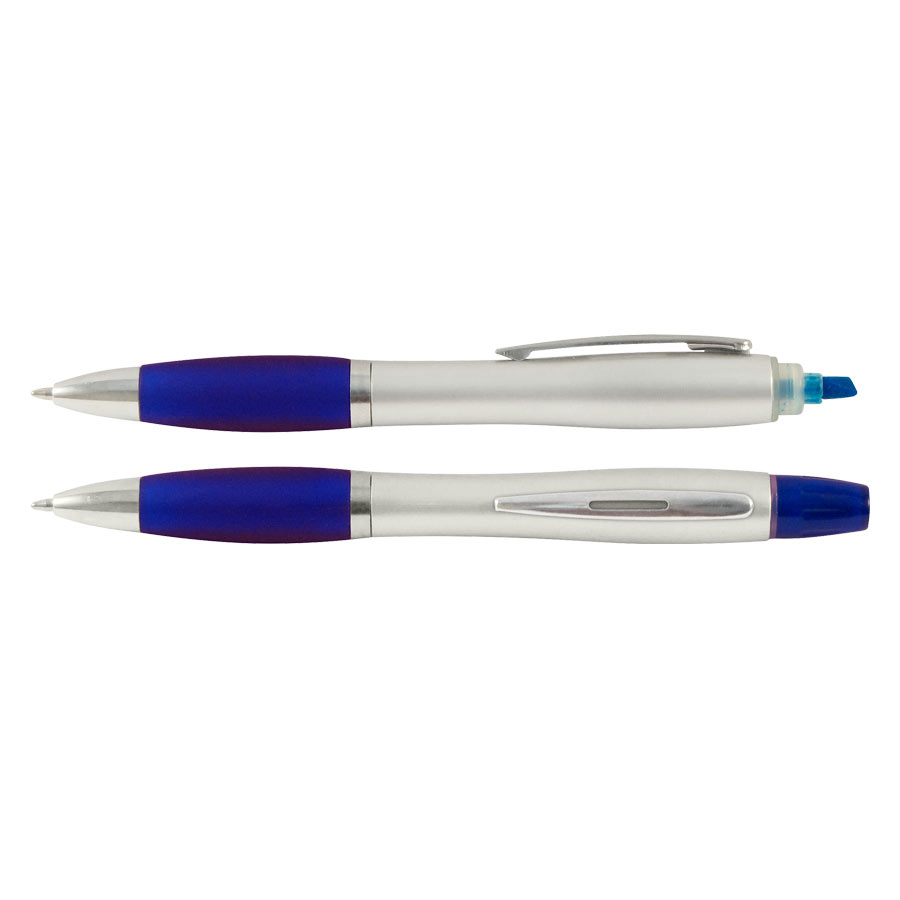 Bolígrafo Promocional "Wind Satin" con Destacador. Escritura Azul.