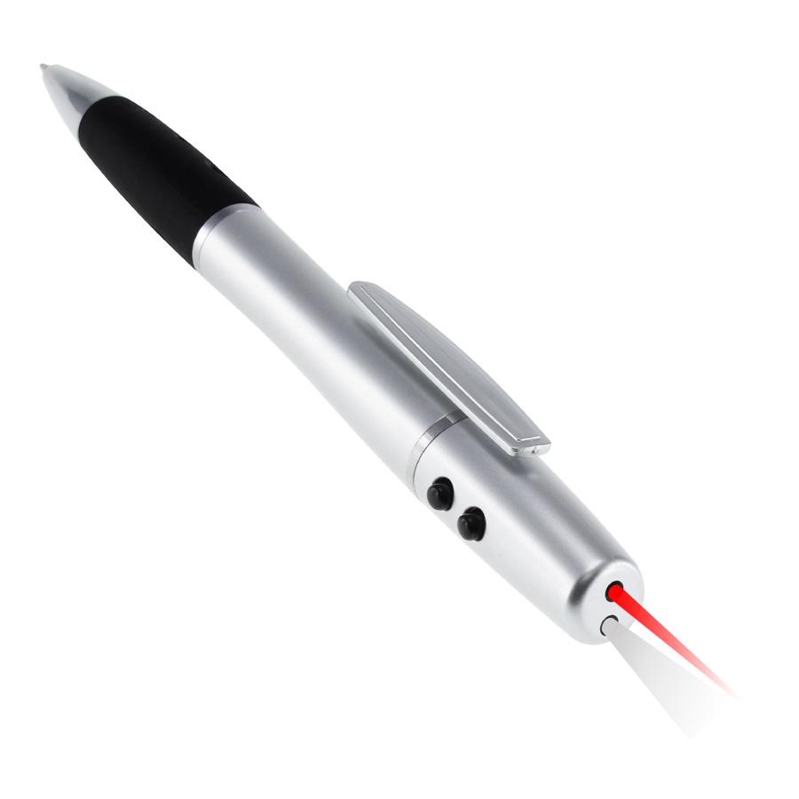 Bolígrafo plástico multi-función 3 en 1. Incluye bolígrafo, linterna LED y puntero láser. Escritura negra.