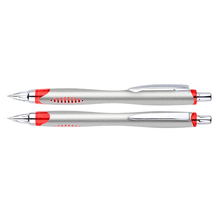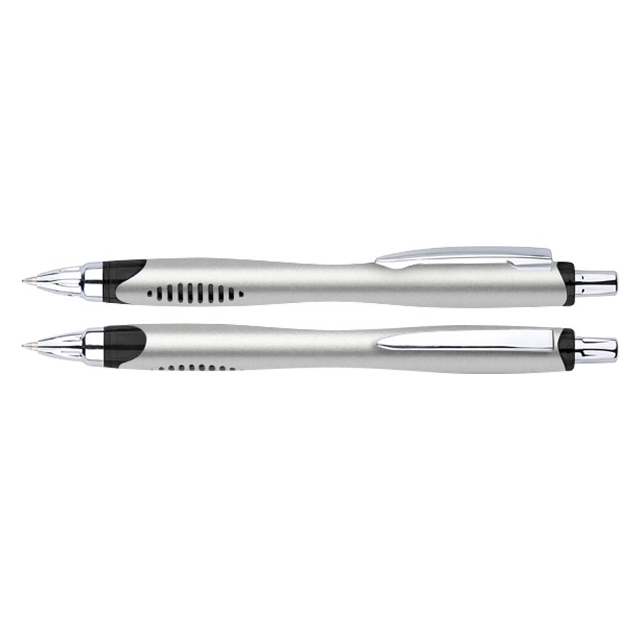 Bolígrafo plástico plateado "Motion". Escritura Azul.