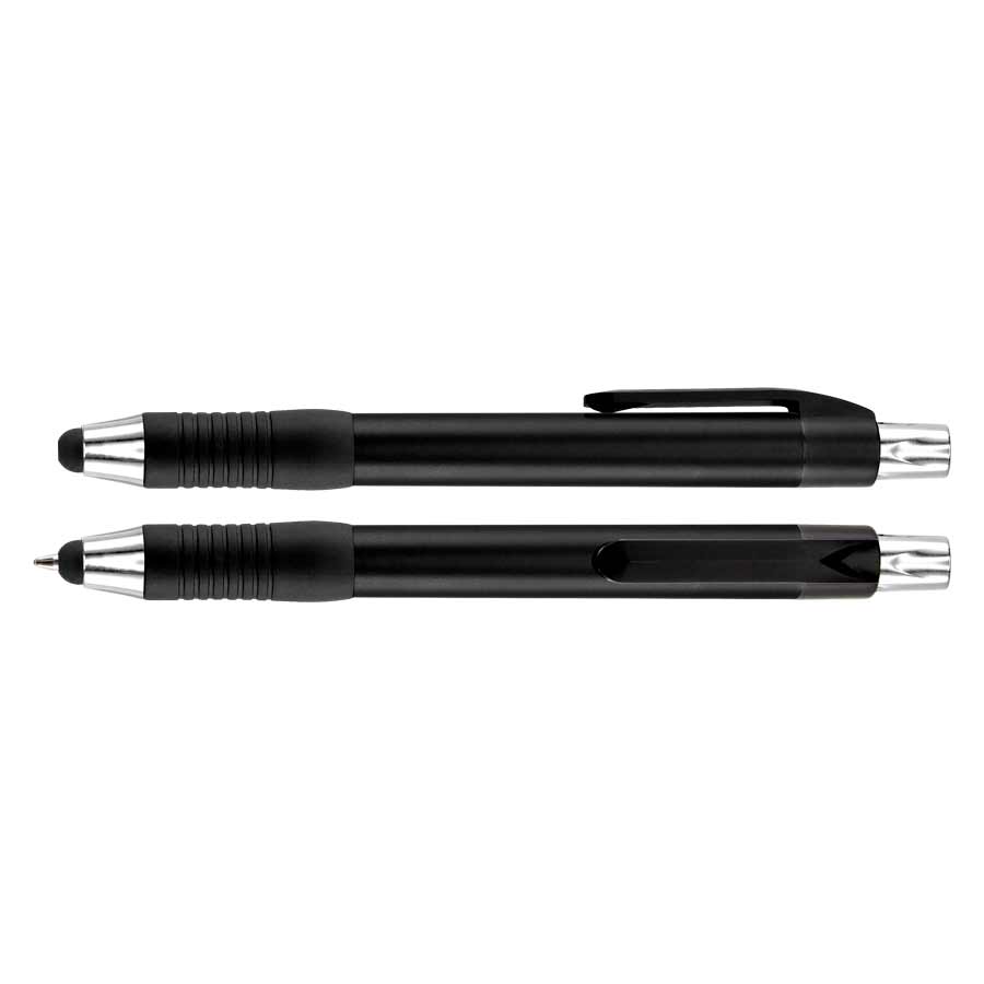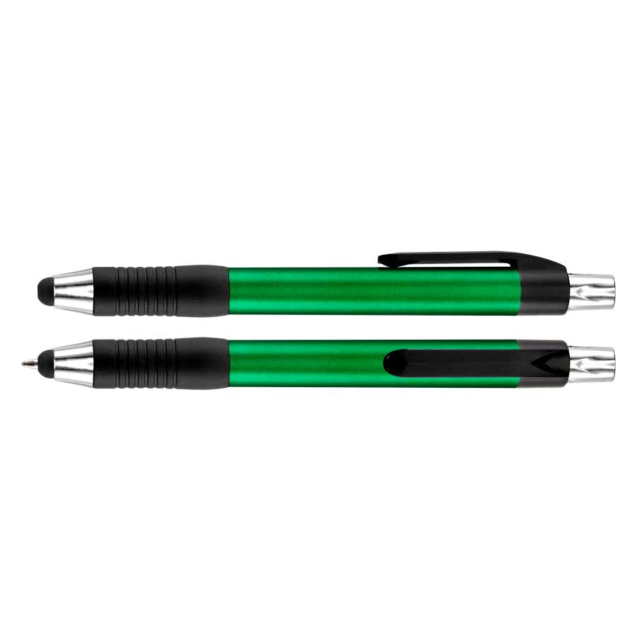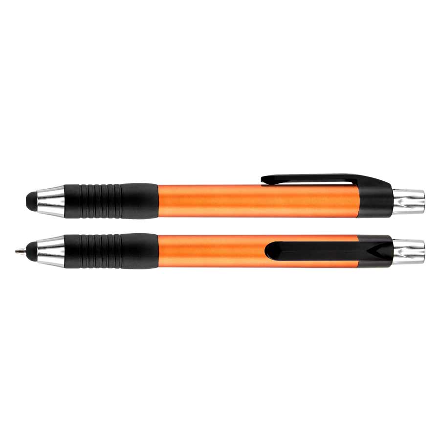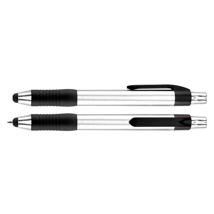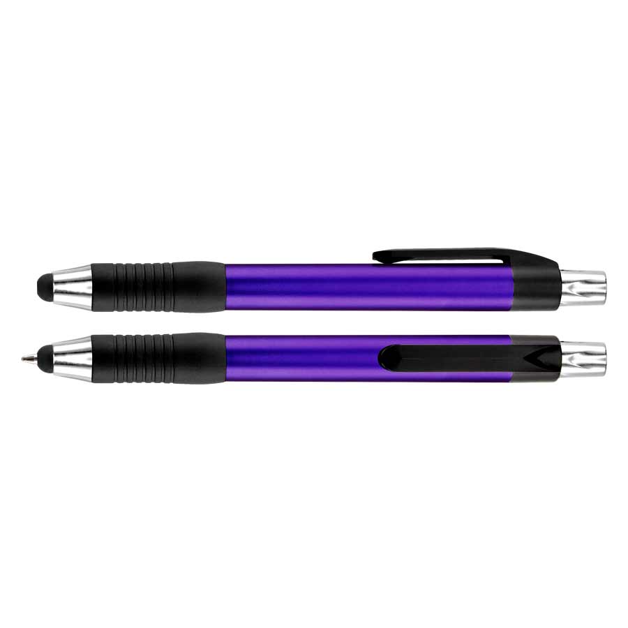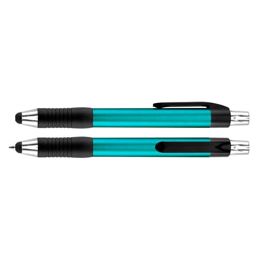 Bolígrafo "Trek" con cuerpo de color metalizado y puntero touch-screen para pantalla táctil. Escritura azul.