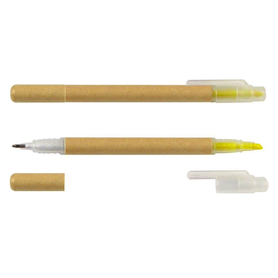 Bolígrafo Ecológico de cartón reciclado con destacador de color. Escritura az...