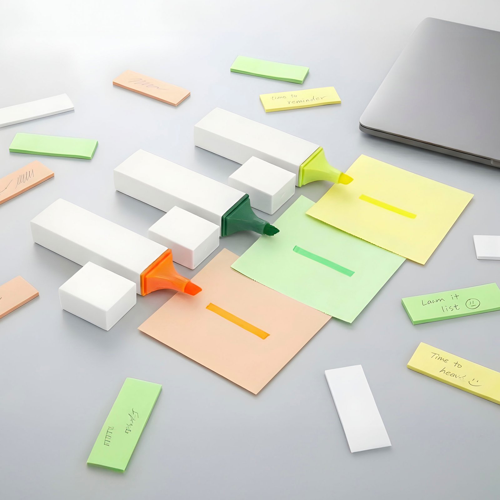 Plástico. Con tapa. Detalles en color negro. Resaltador fluo amarillo. Tinta ...