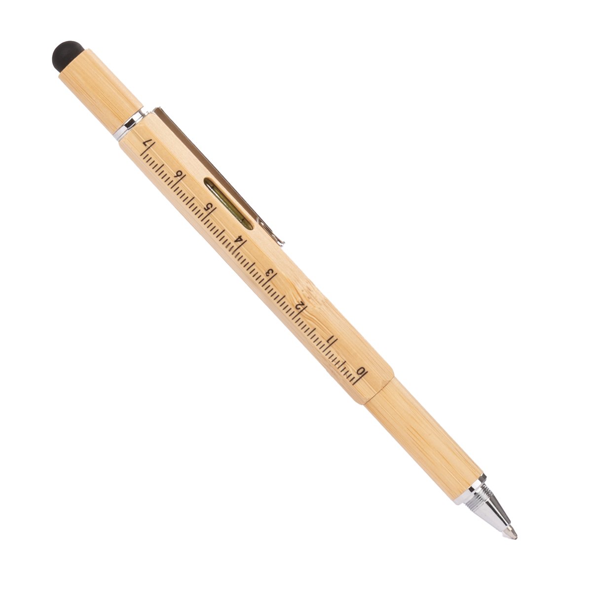 MINDO combina versatilidad y conciencia ecológica en una sola herramienta. Hecho de bambú proveniente de fuentes gestionadas responsablemente, este bolígrafo multifunción incluye regla, nivel de burbuja y destornillador de doble cabeza en un diseño compacto e inteligente. Con detalles cromados y punta touch negra, MINDO es ideal para personalizar y regalar a quienes valoran soluciones prácticas y sostenibles.