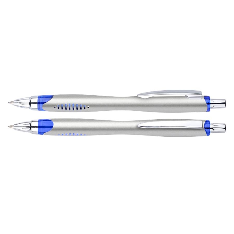 Bolígrafo plástico plateado "Motion". Escritura Azul.