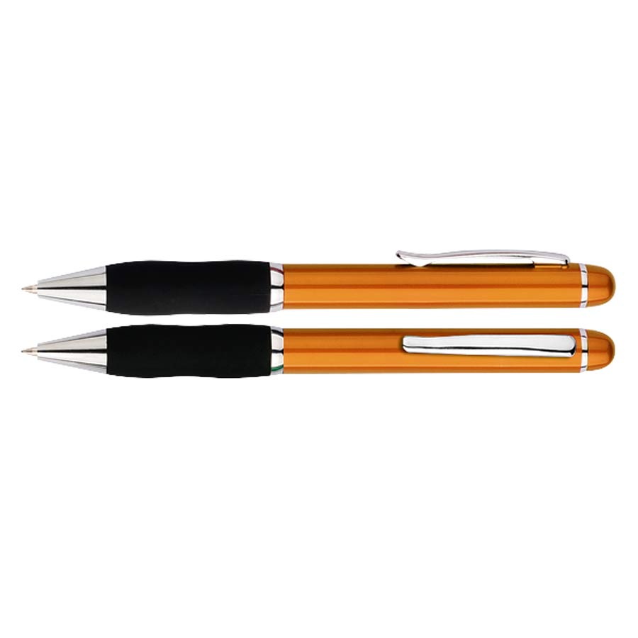 Bolígrafo plástico "Qasar" con cuerpo de color metalizado. Escritura azul.