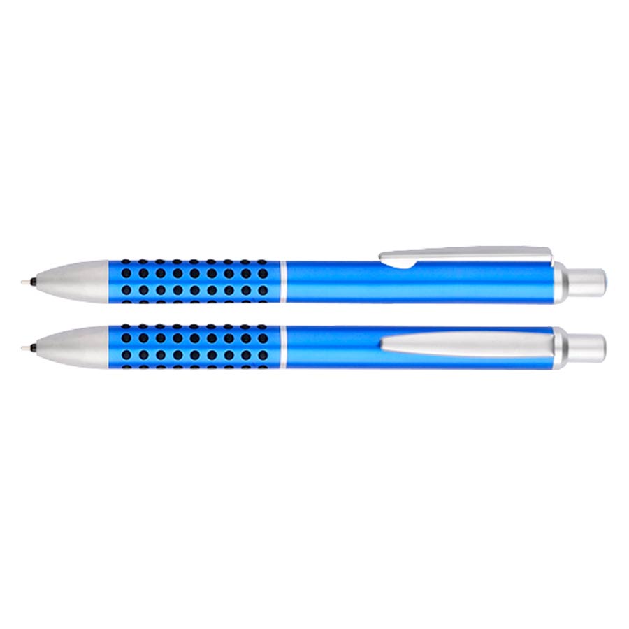 Portaminas metálico satinado modelo "Caterpillar", con lunares de goma negra que brindan una suave sensación de masaje dactilar al escribir.