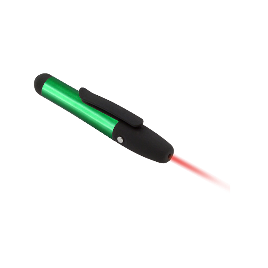 Puntero Láser con Puntero Touch-Screen. Cuerpo de color metalizado. Terminales negros. Presentación en cajita de regalo negra.