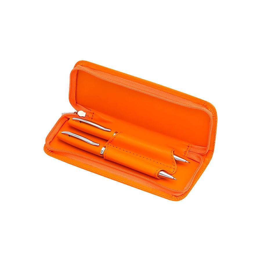 Set de Escritura "Finit". Incluye Bolígrafo Metálico + Portaminas Metálico. Minas 0.7mm incluidas. Presentación en fino estuche simil cuero.