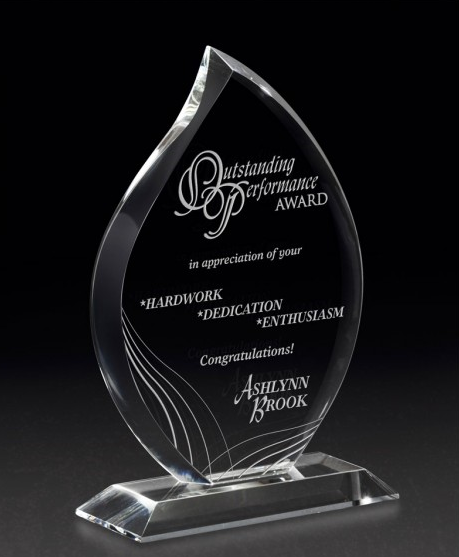 Elegante Trofeo modelo "Phelps", base de madera barnizada y cuerpo de cristal...