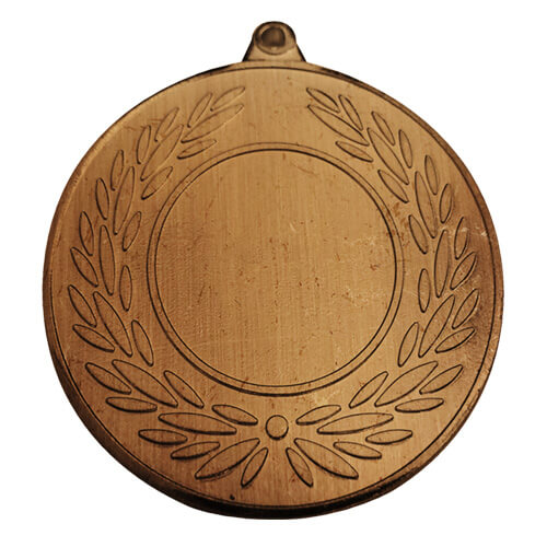 BM08 Medalla de 50mm de diámetro para reconocimiento con diseño hoja de laurel. Diámetro: 50mm Insert Diámetro 25mm Venta en múltiplos de 25 unidades. Opciones de Personalización